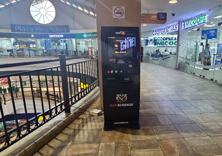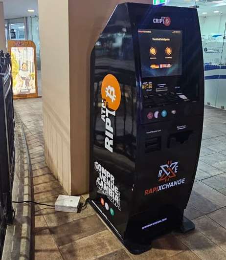 Compra/venta de Bitcoin, Ethereum y monedas estables como USDT. Este en particular está ubicado en el centro comercial Gran Carchá, Alta Verapaz (hay ubicados en otros departamentos), de la empresa Rapixchange.